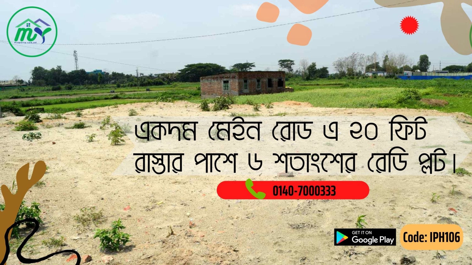 একদম মেইন রোড এ ২০ ফিট রাস্তার পাশে ৬ শতাংশের রেডি প্লট - 6 decimal ready plot on 20 feet Main Road